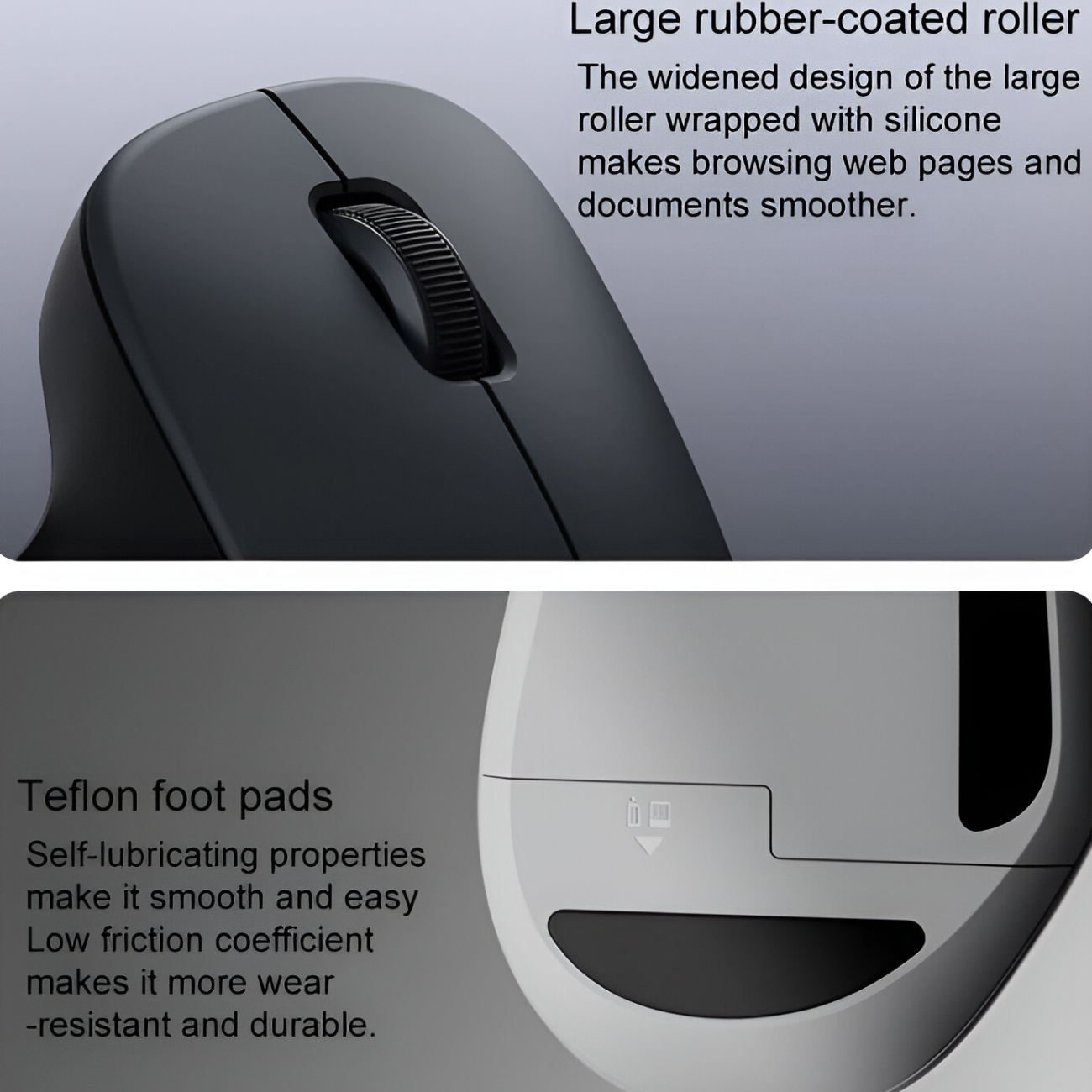 موس بدون سیم شیائومی با طراحی چرخ سیلیکونی بزرگتر، تجربهای روان و بدون لرزش در هنگام اسکرول کردن را فراهم میآورد. این طراحی به طور قابل توجهی پیمایش میان صفحات طولانی و اسناد حجیم را سادهتر کرده و استفاده از دستگاه را بهینه میسازد. کیفیت ساخت بالا و دقت در طراحی چرخ، عملکردی قابل اعتماد و راحت را تضمین میکند.