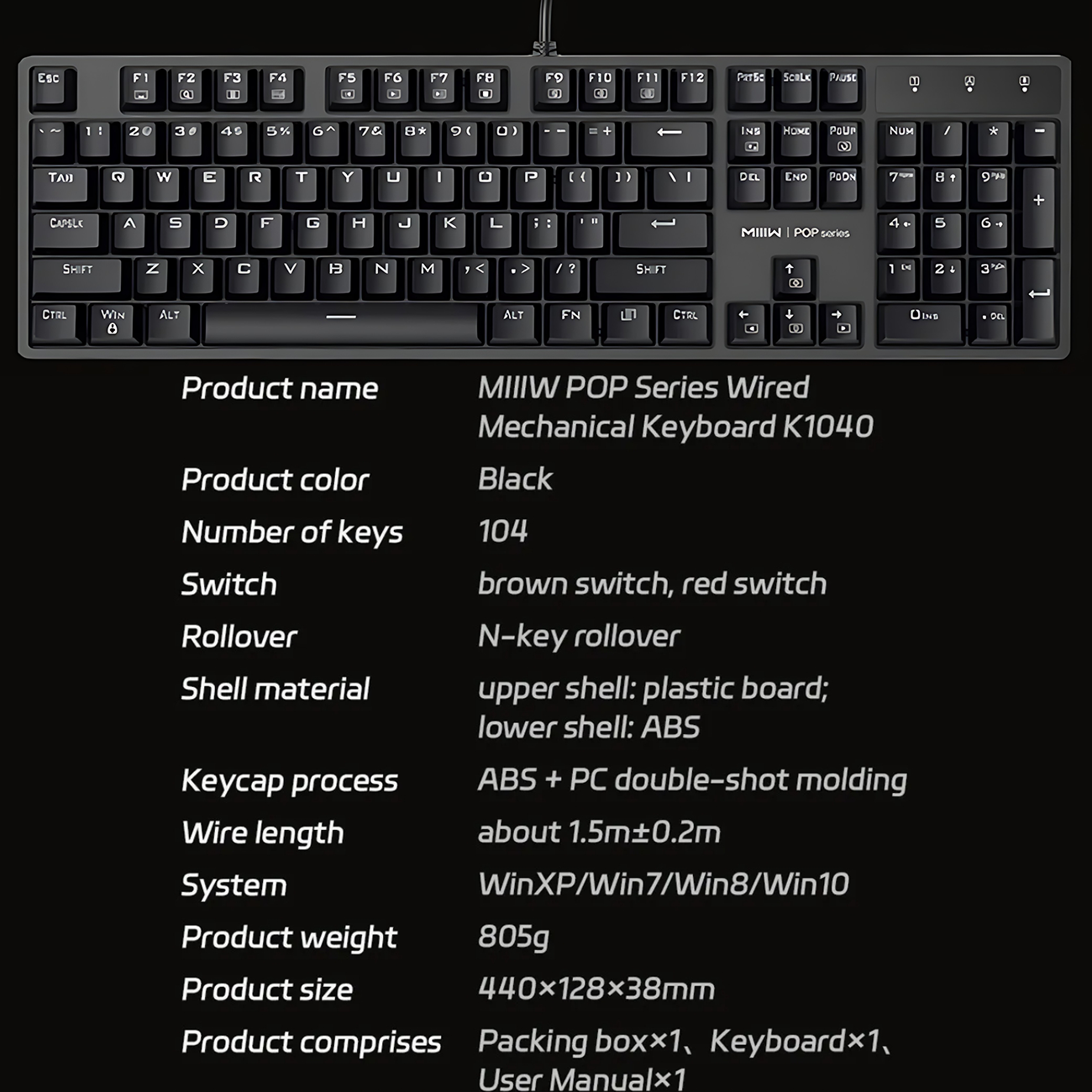 کیبورد گیمینگ MIIIW K1040 در دو نسخه با سوییچهای مکانیکی قرمز (Red Switch) و قهوهای (Brown Switch) عرضه میشود: