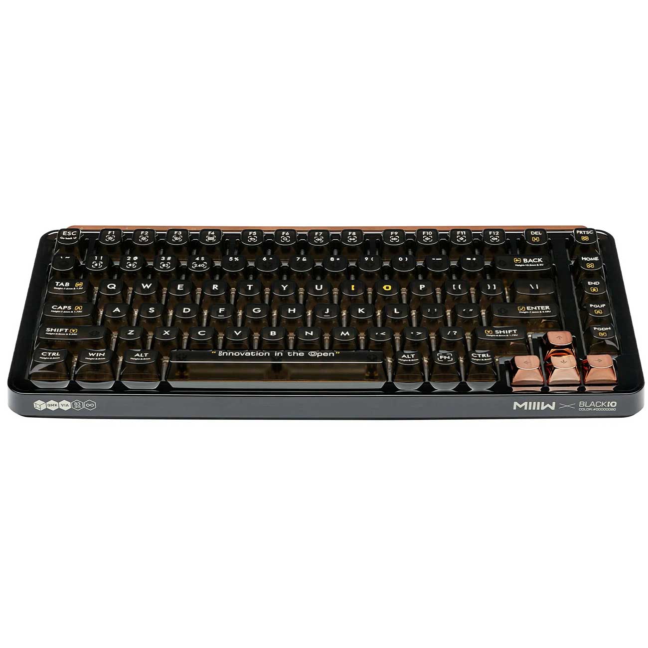 اگر بهدنبال یک کیبورد مکانیکی هستید که نهتنها زیبا و خاص باشد، بلکه امکاناتی فراتر از استانداردهای معمول داشته باشد، MIIIW BLACK IO 83 Keys مدل Space Gold، پاسخی بینقص به نیازهای شماست. این کیبورد با ترکیب طراحی نوآورانه، نورپردازی پویا، سوئیچهای حرفهای و قابلیت برنامهریزی کامل، انتخابی هوشمندانه برای گیمرها، برنامهنویسان و تایپیستهای حرفهای محسوب میشود.