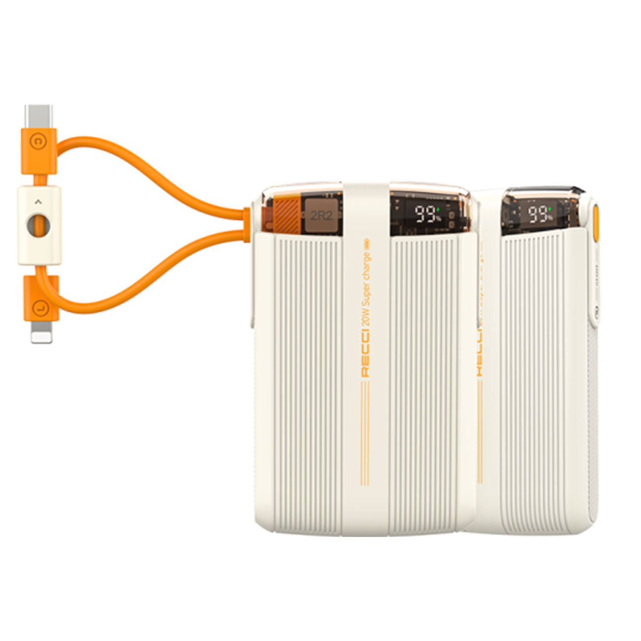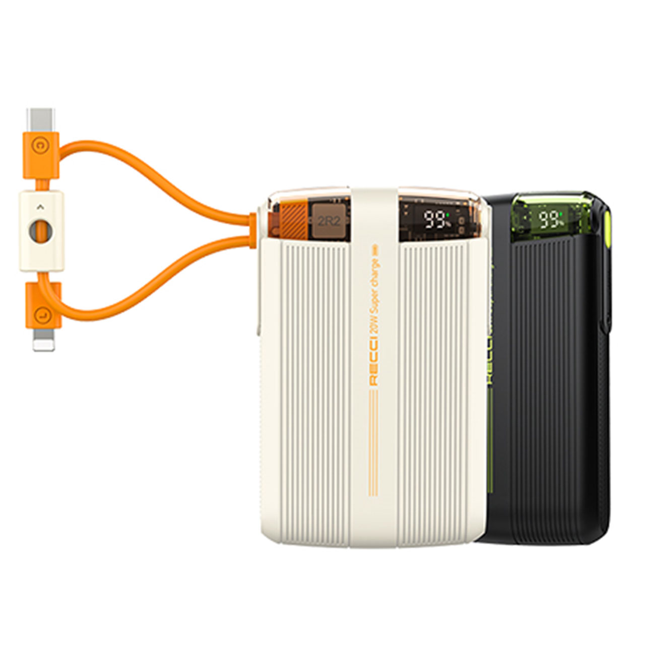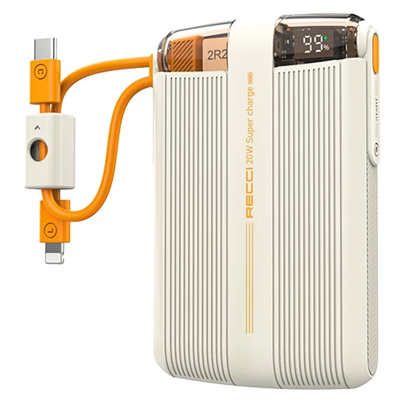 یکی از کاربردی ترین ویژگی های این پاور بانک وجود کابل شارژ تایپ سی و کابل شارژ لایتنینگ است که به خود بدنه پاوربانک با طراحی منحصر به فرد و خلاقانه متصل شده است و از مهمترین قابلیت های این پاوربانک که در دنیای دیجیتالی رو به رشد امروز، قابلیت شارژ سریع است که باعث صرفه جویی در زمان می شود. این پاوربانک برند رسی از شارژ سریع با توان حداکثر PD20W گوشی آیفون 15 با کابل لایتنینگ خود و از شارژ سریع 20 وات گوشی های هواوی با کابل تایپ سی متصل روی خود پشتیبانی می کند.