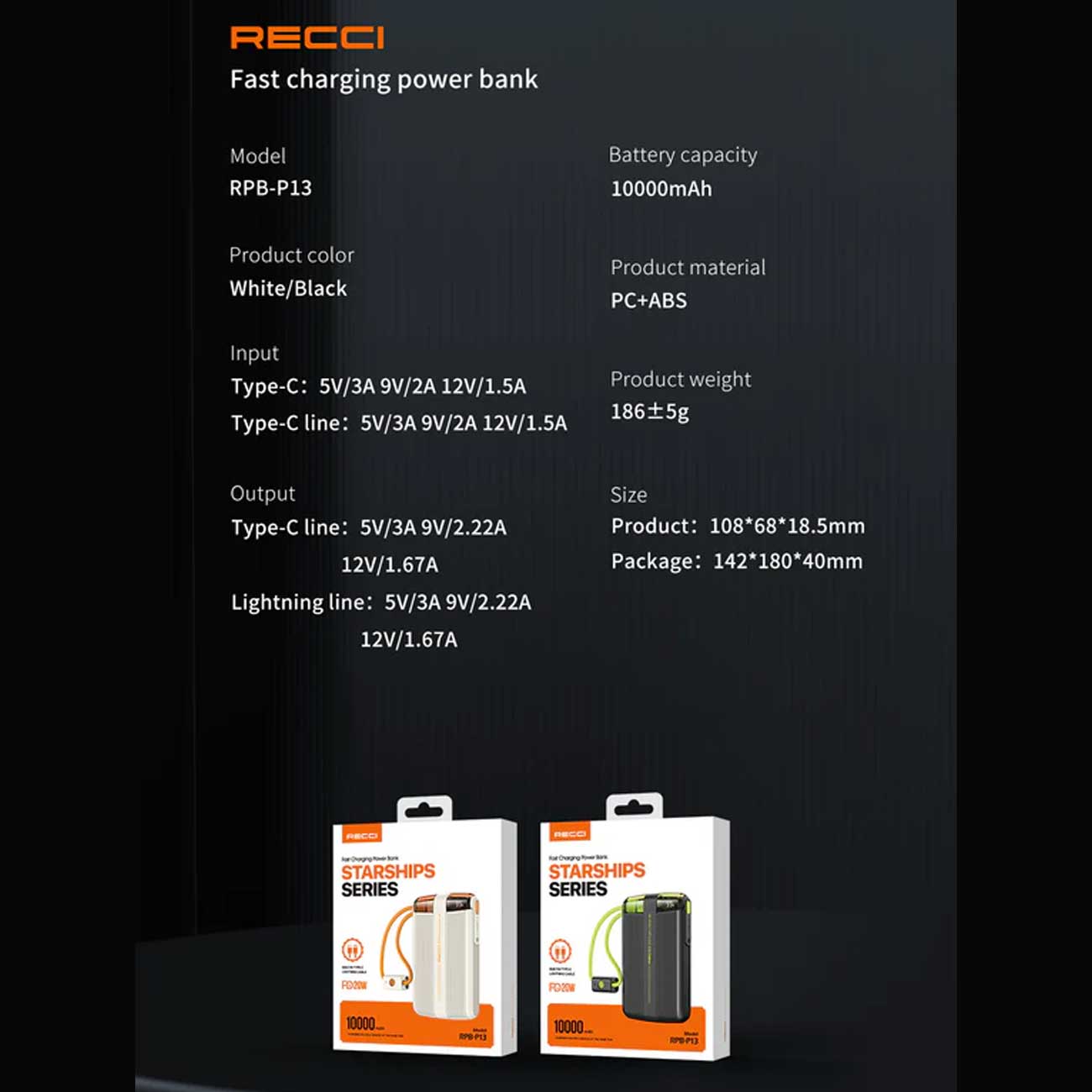 پاوربانک شارژ سریع رسی مدل RPB-P13 محصولی جدید با ویژگی های کاربردی است که نگرانی شما را از بابت اتمام شارژ گوشی، هدفون، ساعت هوشمند و ... از بین می برد. این پاوربانک در دو رنگ سفید و مشکی ساخته شده است و مجهز به کابل شارژ متصل و نمایشگر دیجیتالی است.