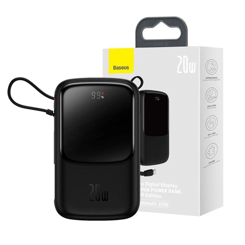 Baseus Qpow Pro دارای یک کابل لایتنینگ داخلی و 2 پورت خروجی است که از پروتکل های شارژ سریع SCP، FCP، QC و PD پشتیبانی می کند. این شارژر همراه این امکان را به شما می دهد تا ولتاژ لازم جهت شارژ 3 دستگاه را به طور همزمان تامین کنید. توان خروجی آن به 20 وات می رسد و ظرفیت اسمی آن 10000 میلی آمپر ساعت است.