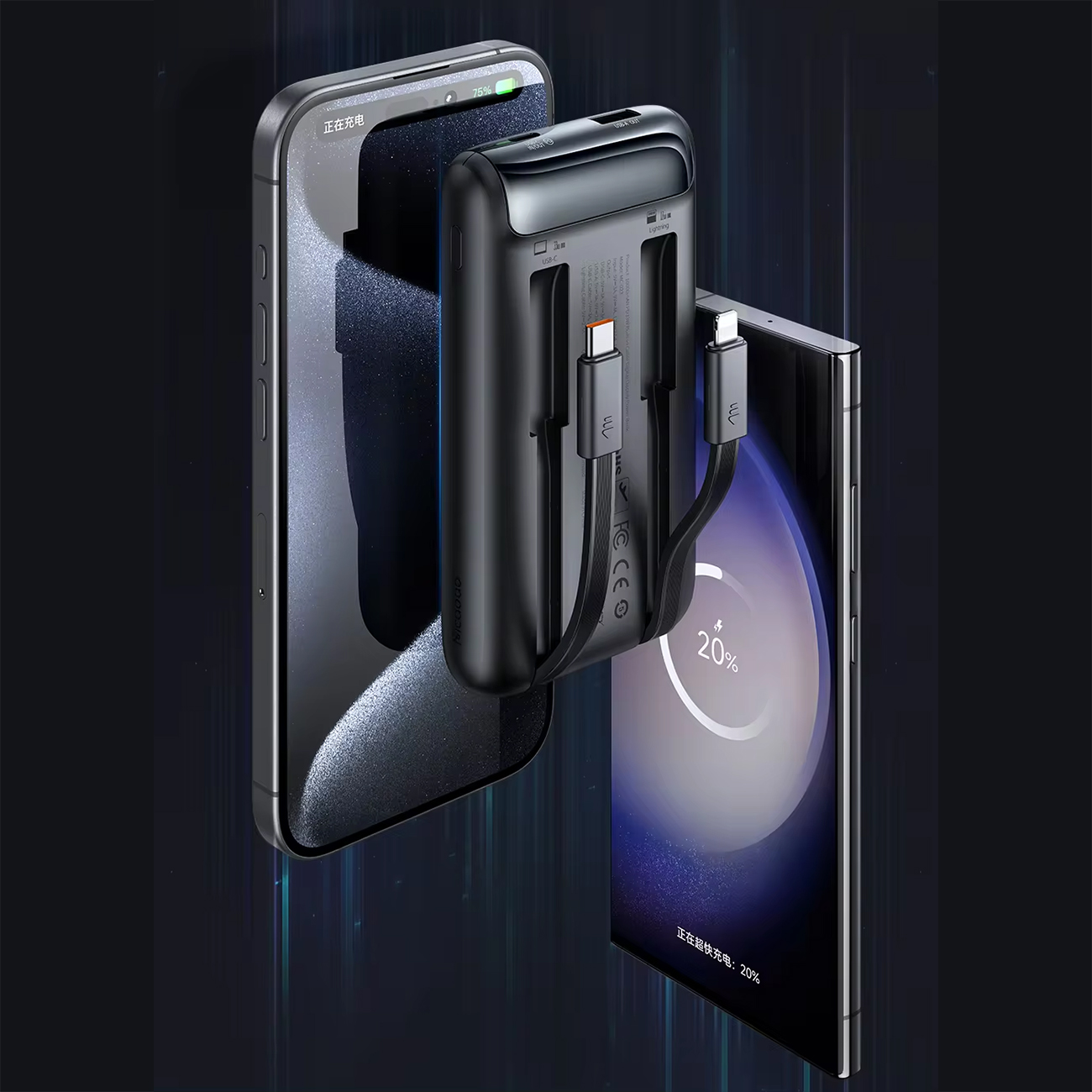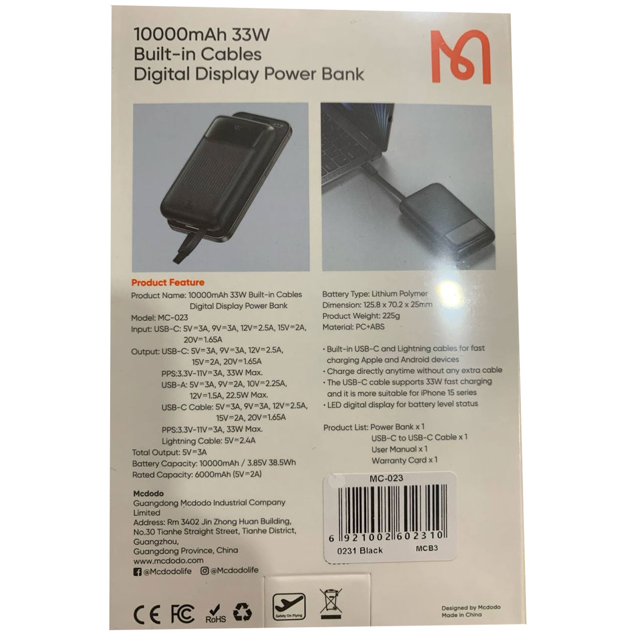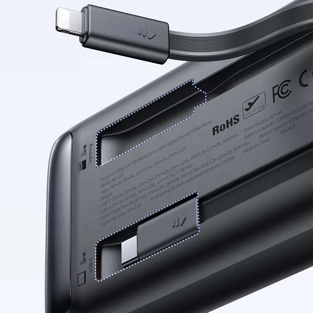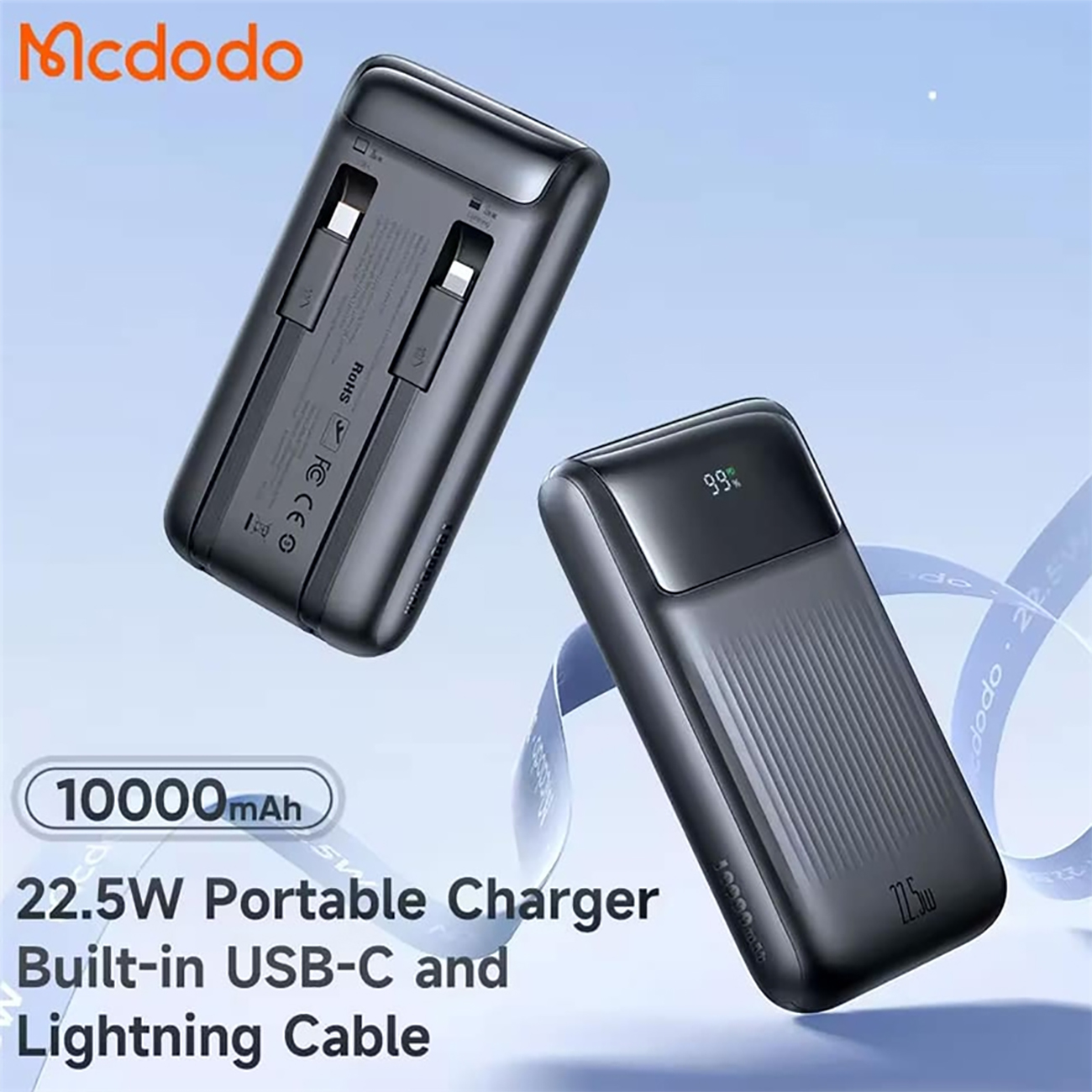 یکی از مزایای کلیدی پاوربانکهای سری مک دودو MC-023 کابلهای Type-C و Lightning همراه آن است که نیاز به حمل کابلهای اضافی را باز بین میبرد. این ویژگی نه تنها زندگی را آسانتر میکند، بلکه به شما امکان میدهد تا به سرعت و راحت دستگاههایی با توان حداکثر 33 وات را شارژ کنید، مخصوصا در شرایطی که هر دقیقه اهمیت دارد!