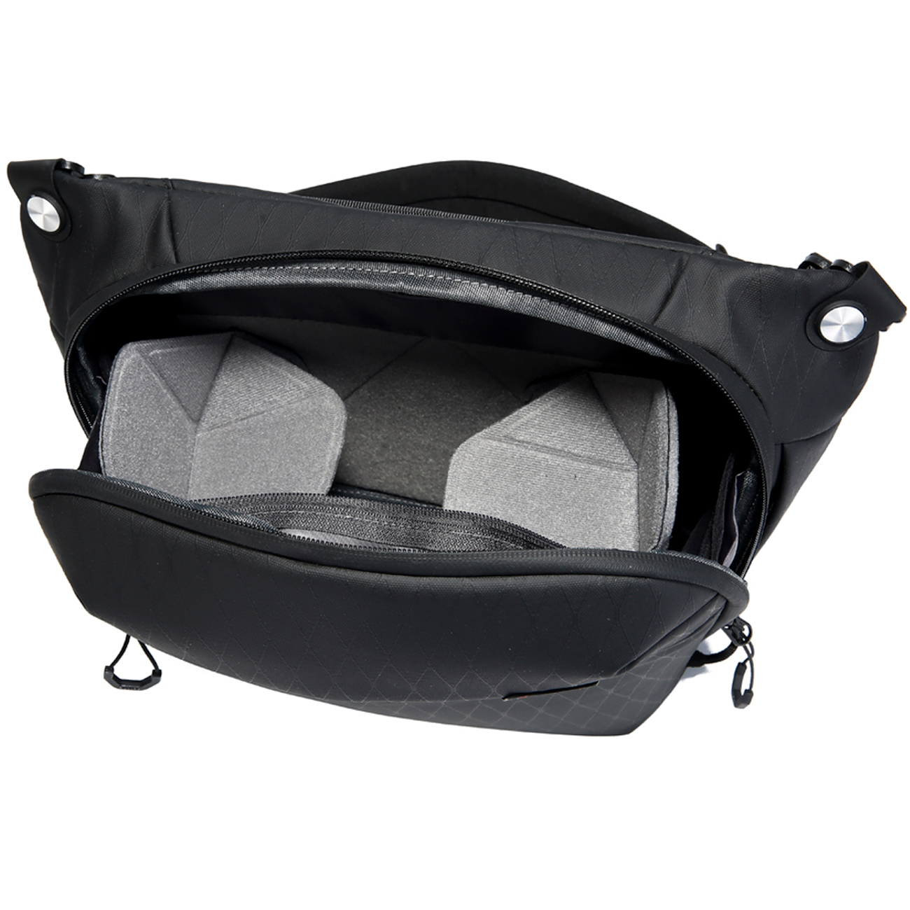 فضای داخلی کیف کراس بادی XJ328 از برند بنج به پانلهای چسبی قلابوحلقه (Hook and Loop) مجهز شده است که بهراحتی نصب و جابجا میشوند. این پانلها امکان اضافه کردن، حذف یا تغییر دیوایدرها را فراهم میکنند تا فضای داخلی دقیقاً مطابق با تجهیزات شما تنظیم شود. بدنه دوربین، لنزها، باتری یدک و لوازم جانبی هر کدام در جای امن و مشخص خود قرار میگیرند و با تغییر تجهیزات، چیدمان کیف به آسانی قابل اصلاح است. پانلها از فیبرهای نرم و متراکم ساخته شدهاند که به تجهیزات آسیبی نمیرسانند و در عین حال ضربهگیری و محافظت مطمئن را فراهم میکنند. دیوارههای قابل تا شدن نیز اجازه میدهند ابعاد فضای داخلی را متناسب با نیاز خود تغییر دهید و چیدمان منطقی و کارآمدی ایجاد کنید.
